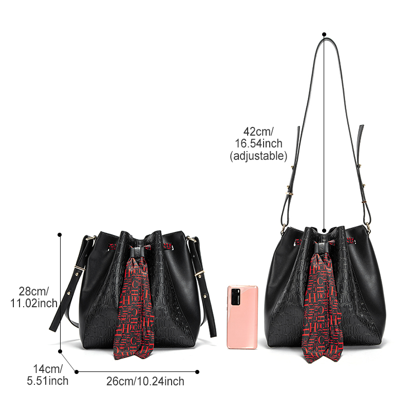 CHCH Large Capacity Shopping Travel Commuting Shrink Scarf Shoulder Bag Fashion Shoulder Bag Luxury Brand Women's PU Bucket Bag
